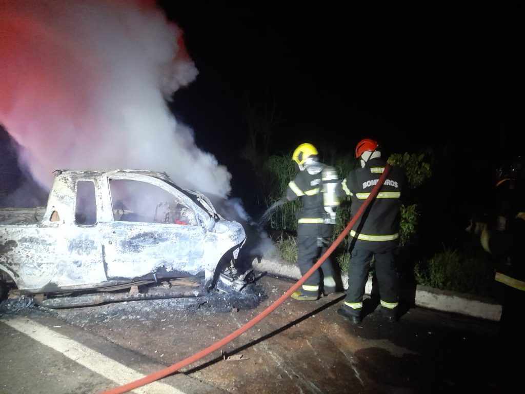 Corpo de Bombeiros apagou incêndio em caminhonete na BR-153