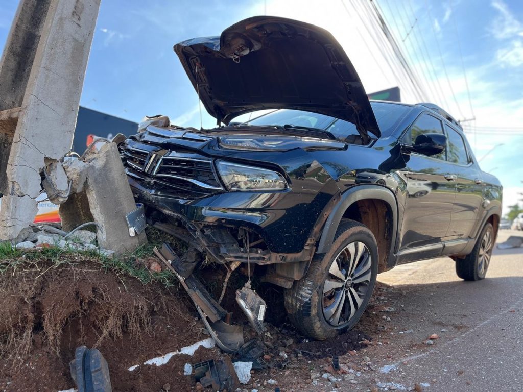 Home»Tocantins»Caminhonete fica com a frente destruída após quebrar poste em avenida de Palmas