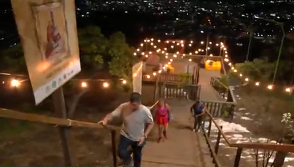 Ao longo da subida, que é bastante íngreme, são 14 estações que simbolizam justamente a Via Sacra, os momentos que Jesus passou durante sua paixão.